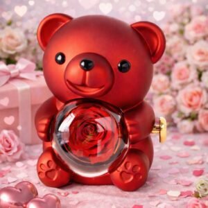 Dovana mylimajai ,,Meškiukas su rožės žiedu ir grandinėle,,