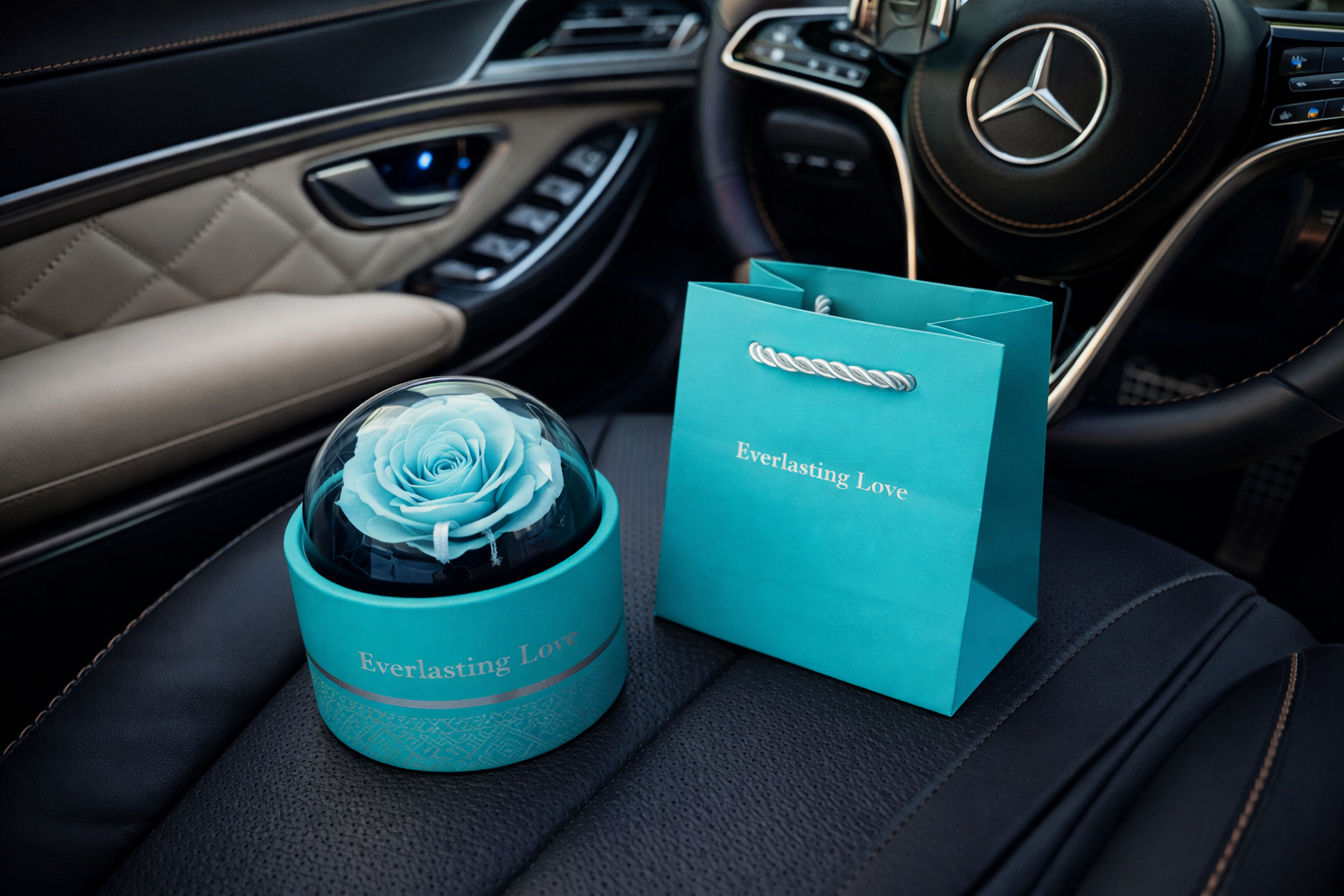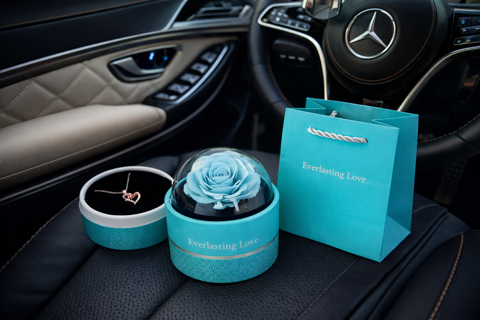 Atsidarius dėžutę, jūs rasite skaniai kvepiančią muilo rožę. Nuėmus viršutinę dalį, apačioje esančiame stalčiuke rasite grandinėlę. Grandinėlės viduje 100 skirtingų kalbų parašyta Aš tave myliu.