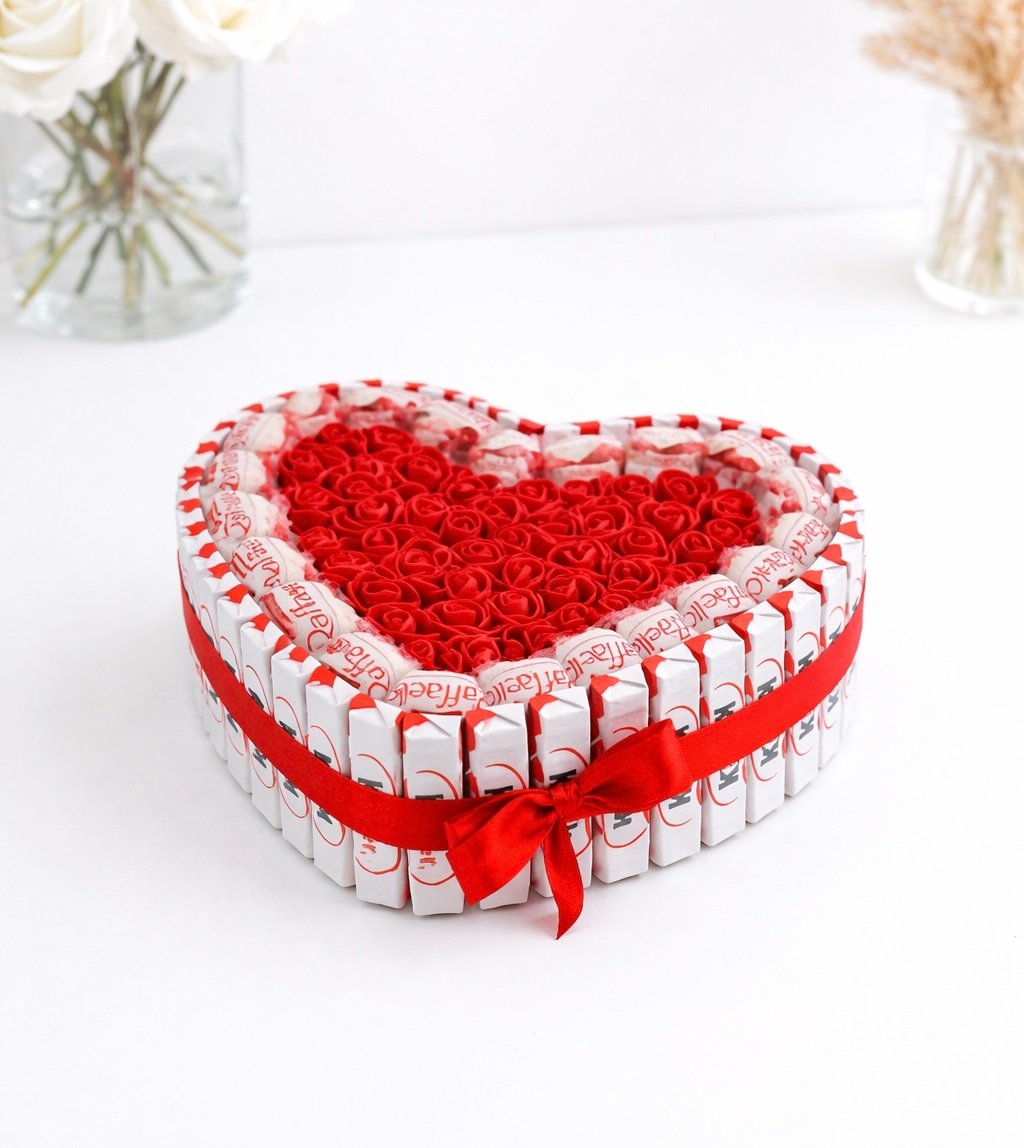 Širdelės formos saldainių kompozicija – saldi dovana, kuri džiugina iš pirmo žvilgsnio.