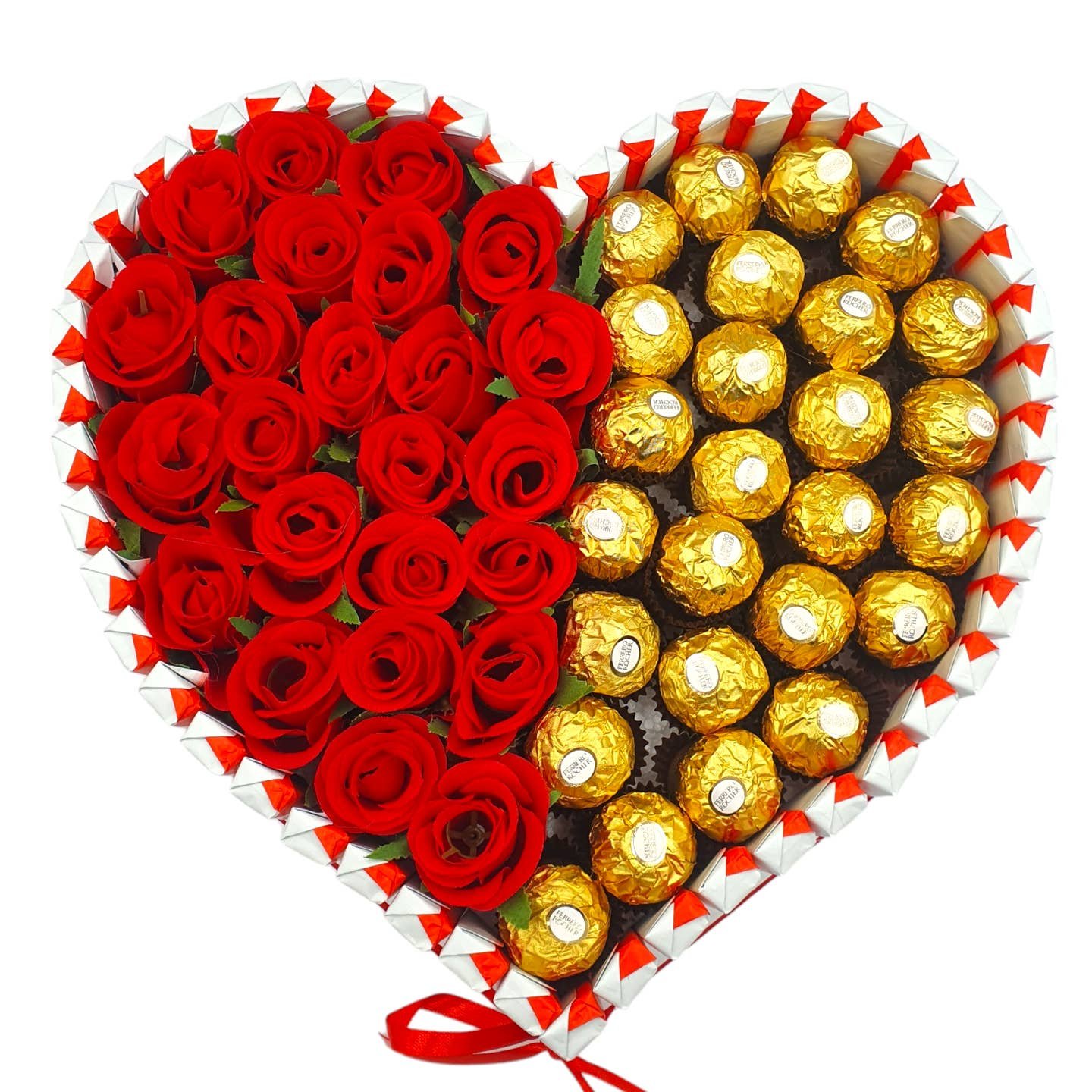 Širdelės formos saldainių kompozicija – saldi dovana, kuri džiugina iš pirmo žvilgsnio.